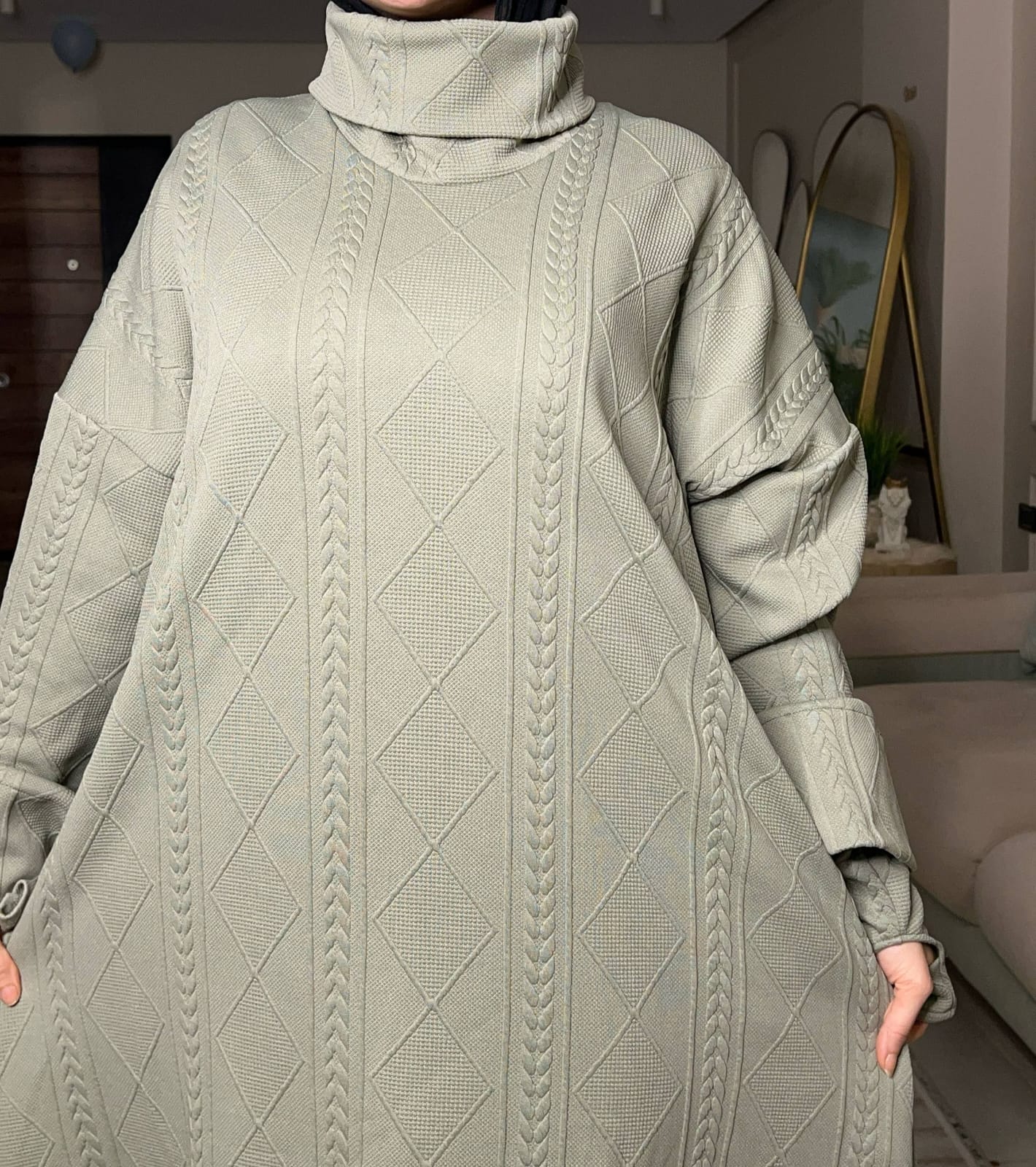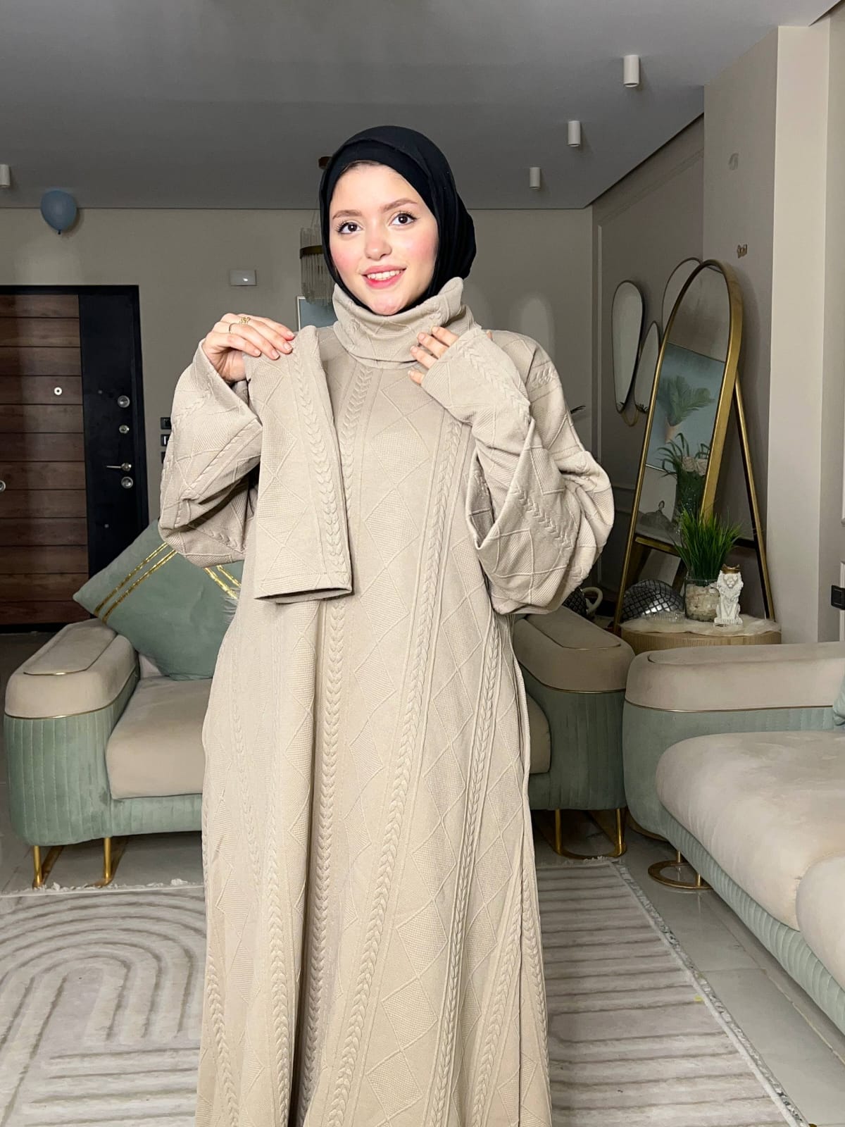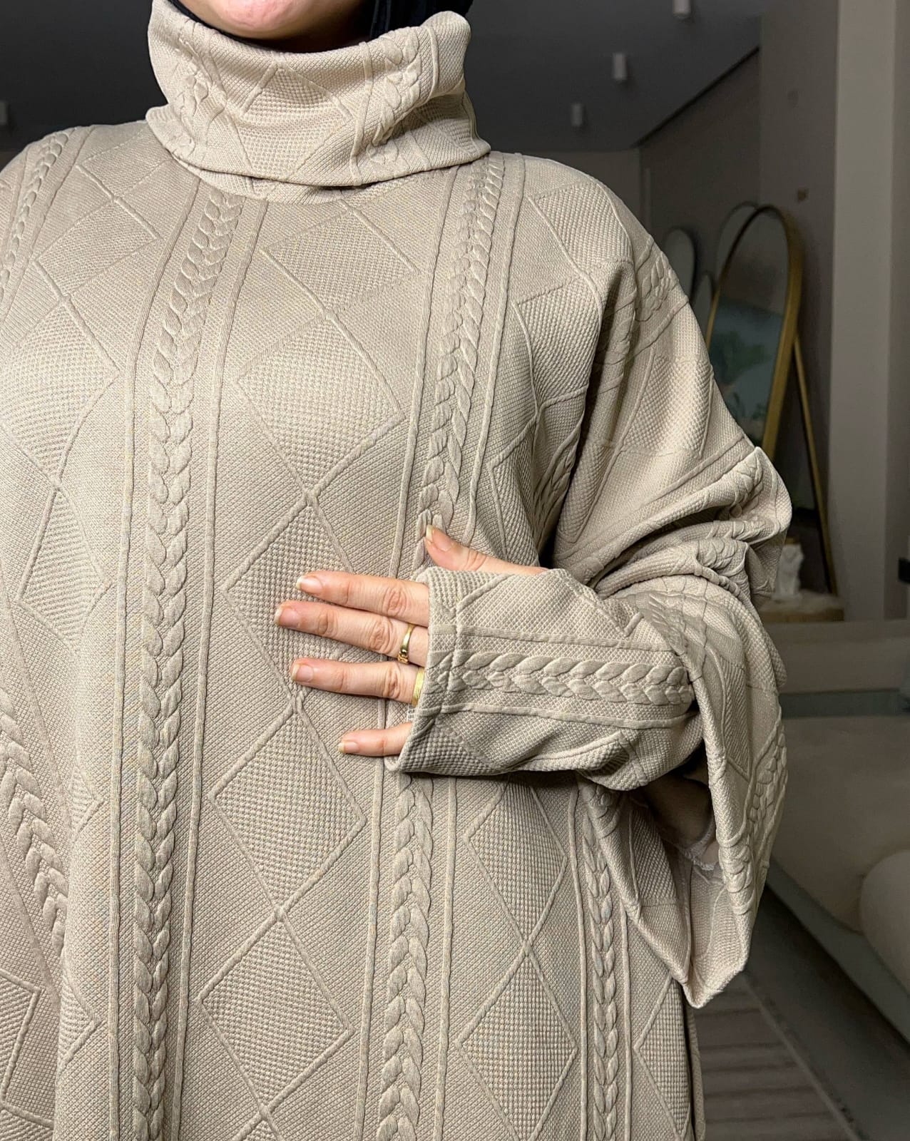 الخامة صوف تريكو مضفر مستورد، ناعمة جدًا ومريحة، ومفيش برد هيعدي منها 🥰🔥”