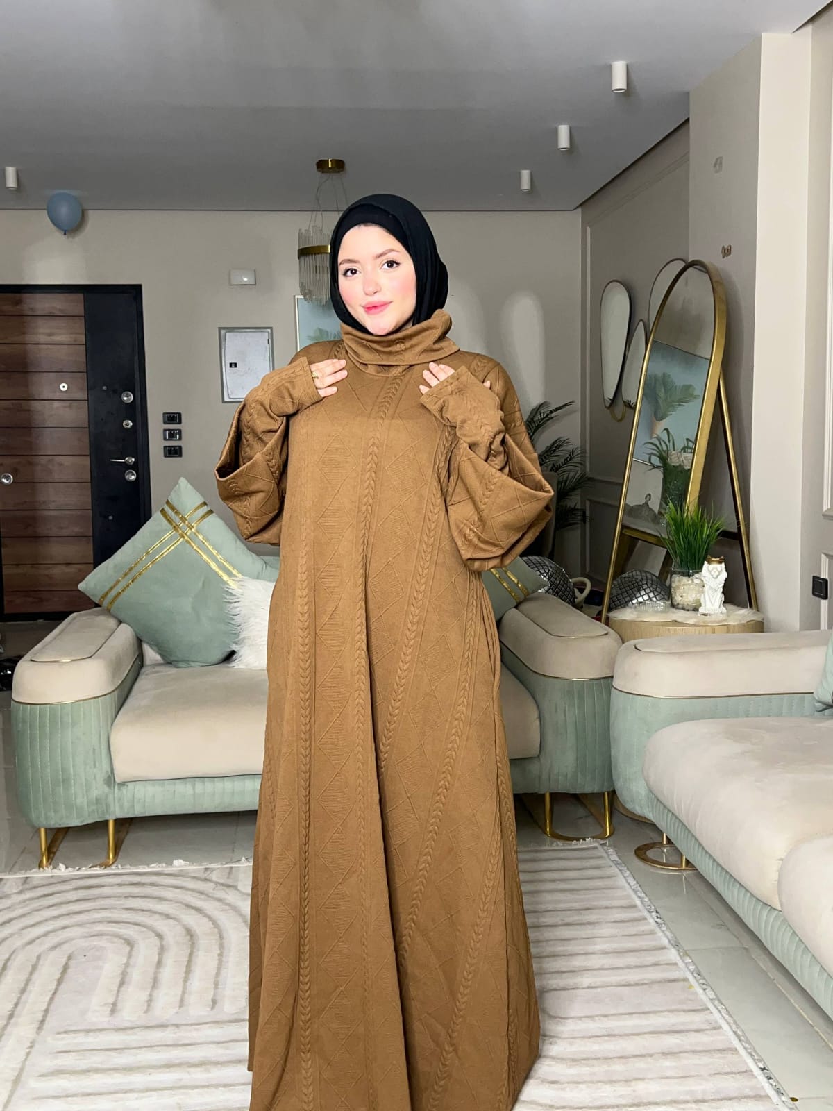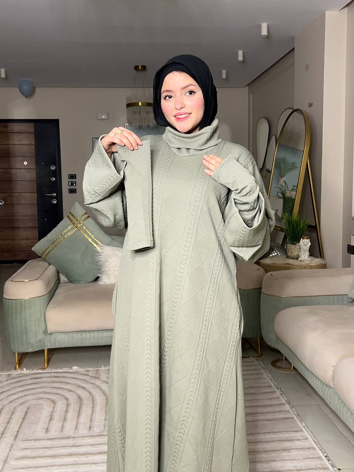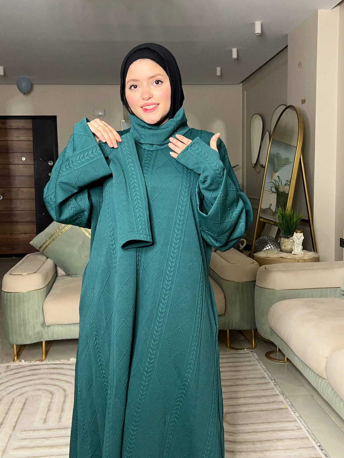 الخامة صوف تريكو مضفر مستورد، ناعمة جدًا ومريحة، ومفيش برد هيعدي منها 🥰🔥”